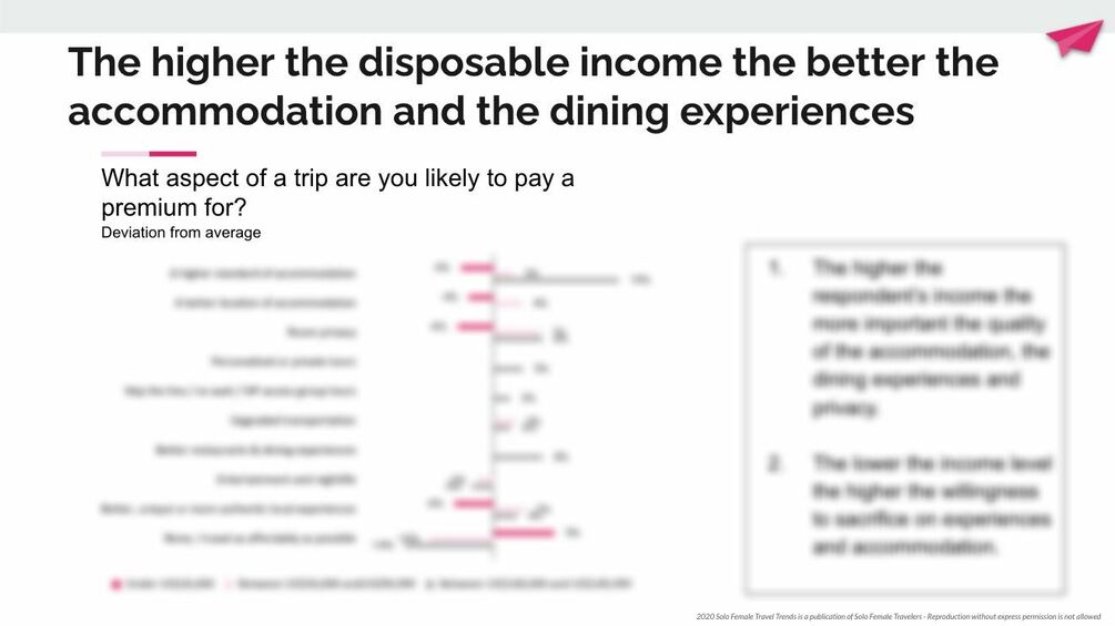 - The elements of a trip that women traveling solo would be willing to splurge on if they had the resources, by age group and disposable income.